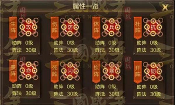 b. 助阵效果:提升阵法对应的属性加成,例如生阵助阵增加攻击,伤阵助阵增加防御。