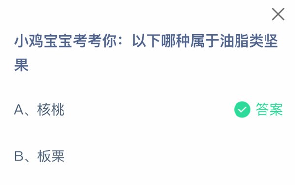 2、小鸡宝宝考考你:以下哪种属于油脂类坚果