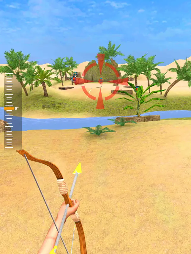 化身为射箭大师,点击按钮开始匹配、滑动控制射击轨迹和角度,使箭击中对手,夺取胜利!