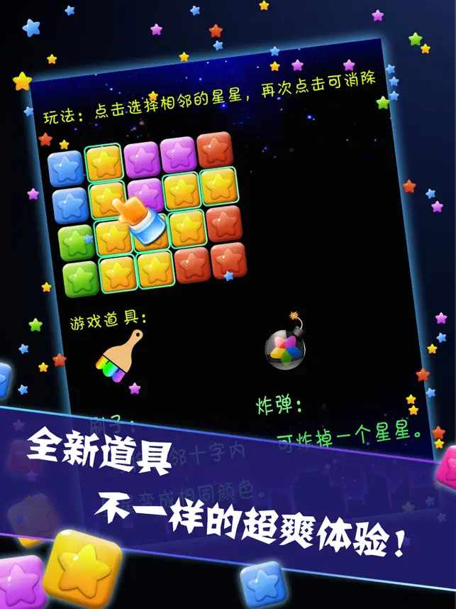 经典模式:点击相邻相同颜色的星星就可以消除得分,超简单娱乐休闲极品!