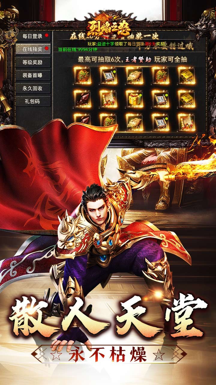 《烈焰之怒》十年传奇运营经验,千日夜匠心打造,上线免费送自动捡武,自动挂机,激活红包充值点更能白嫖赞助!一切均可白嫖!打怪有惊喜!炫酷大光柱!拼的就是人品!逆天属性装备随机爆!红包充值掉不停!每天登录领真充,散人轻轻松松通关!活动不断,福利不停!散人天堂,永不枯燥!